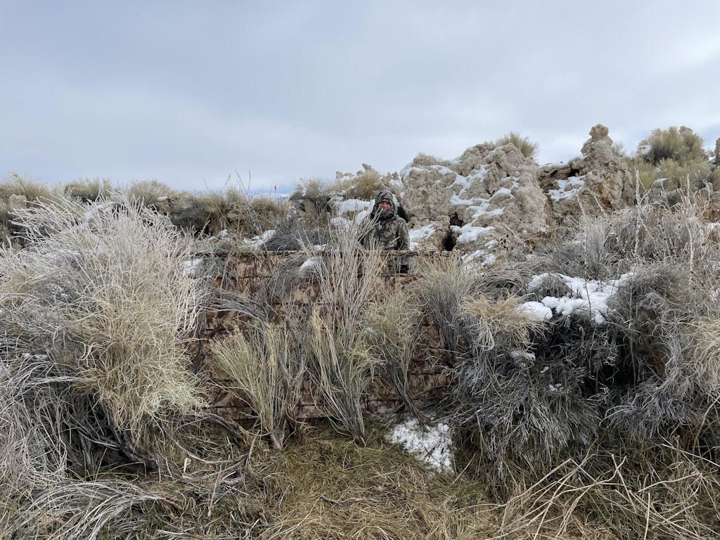Revolutionary new concealment system from Tanglefree. Offering the ultimate in portability and concealment to effectively hunt field edges, cattail sloughs, standing corn, river banks, and even in the middle of the field from a sitting position while being completely concealed. The panel blind design creates multiple set-up configuration options in the field. The front and back panels will comfortably conceal 4 hunters. Hunting against standing corn or river banks where only front coverage is required, you can comfortably conceal up to 9 hunters with 2 2-panel systems. Add natural vegetation to the grass straps and the blind becomes virtually invisible by eliminating hard edges. Hunt from the comfort of a sitting position. Window viewing ports allow all the hunters to watch the show!