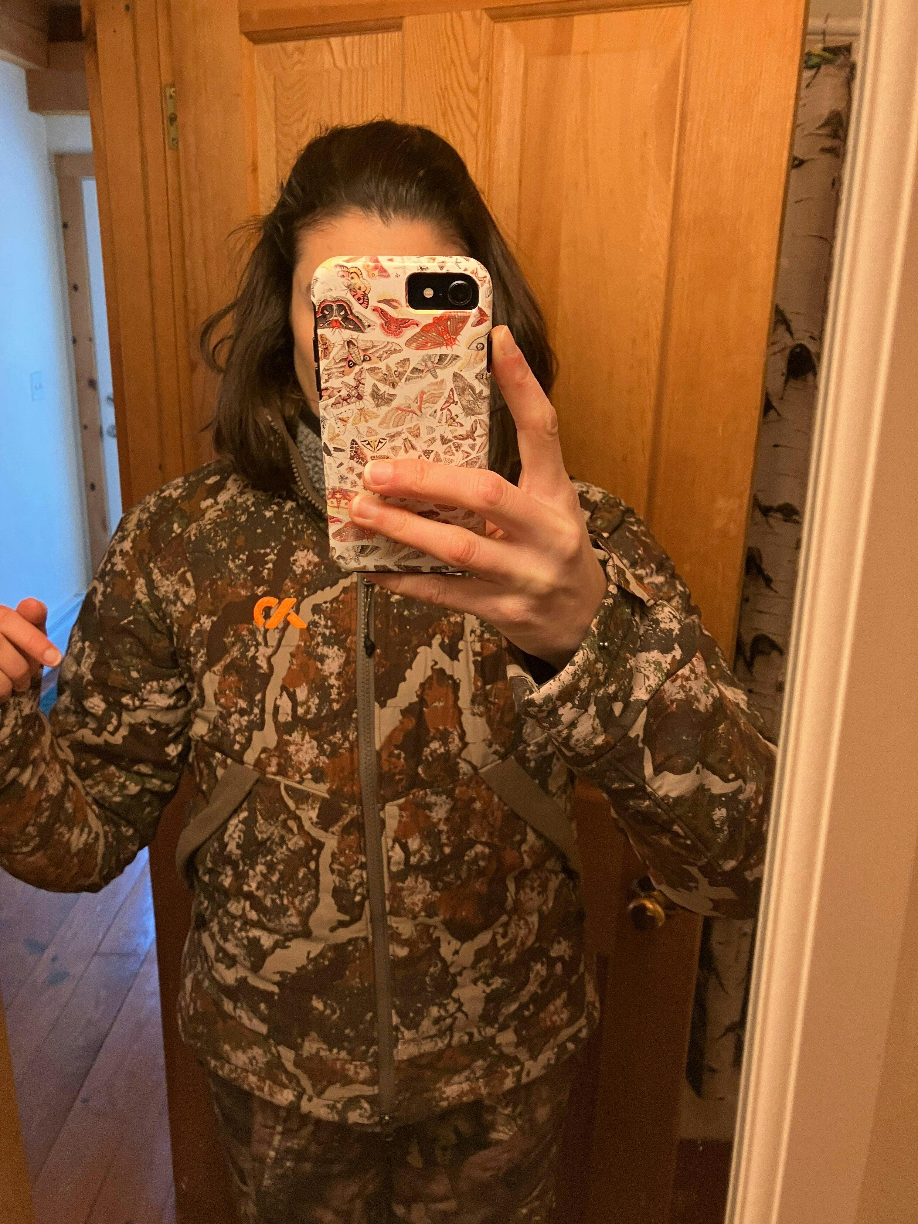 This is my first dedicated hunting jacket. Up until now I've either worn my husband's (which is warm but gigantic and annoying) or a regular outdoor down jacket (warm, but way too loud, and when I turn my head the deer stare up at me, no good). I ordered this on Black Friday, because there was no way I was spending $450 on a jacket I wear for 2 months of the year. I had it delivered to my in-laws in NJ - it will not ship to NY - so I wasn't able to get my hands on it until Christmas, and got to try it out for the last week of bow/muzz season.